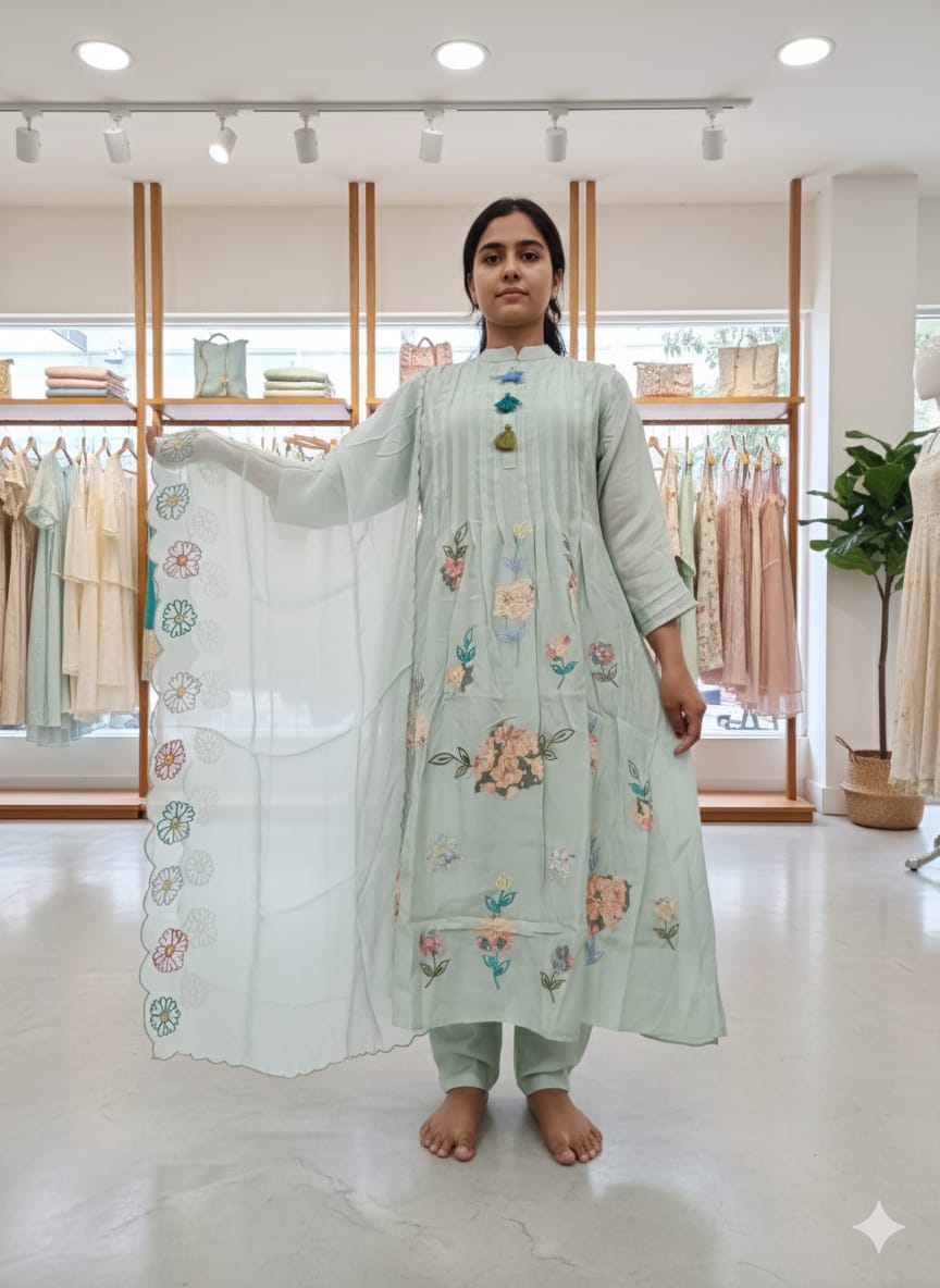 tep out in effortless grace with this beautiful pastel green embroidered kurta set, perfect for every occasion — from casual outings to festive gatherings.