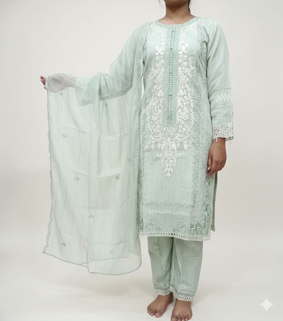 Discover effortless style and timeless charm with this Pakistani-inspired kurta set, crafted to elevate your ethnic wardrobe. This 3-piece ensemble includes a graceful kurta, matching bottoms, and a beautifully coordinated dupatta — all designed to reflect traditional aesthetics with contemporary appeal. The soft light colour palette makes it perfect for festive occasions, family functions, casual gatherings, cultural events, or everyday celebrations.
